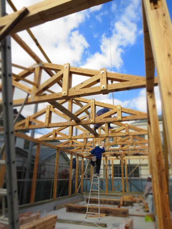 住宅以外の建物で使われる事が多い工法で、今はエコの観点から木でつくる取り組みが進んでいます。