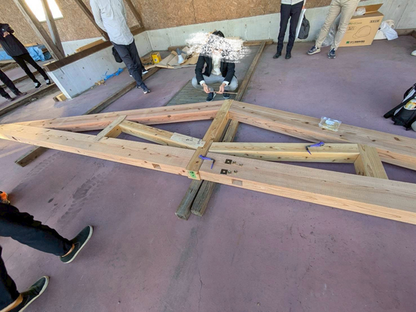 今回学んだ『JISトラス』は、標準規格に基づき詳細が決められ、一般的な木材や加工設備を使いながらコストを抑え、なおかつ大きな空間をつくることができる、非常に経済的な工法でした。