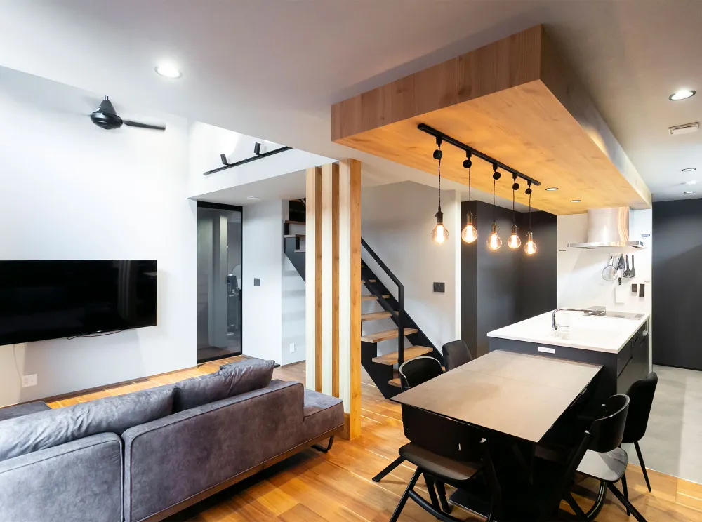 ダイニング&キッチンは、下がり天井で一体感を生み出しています。