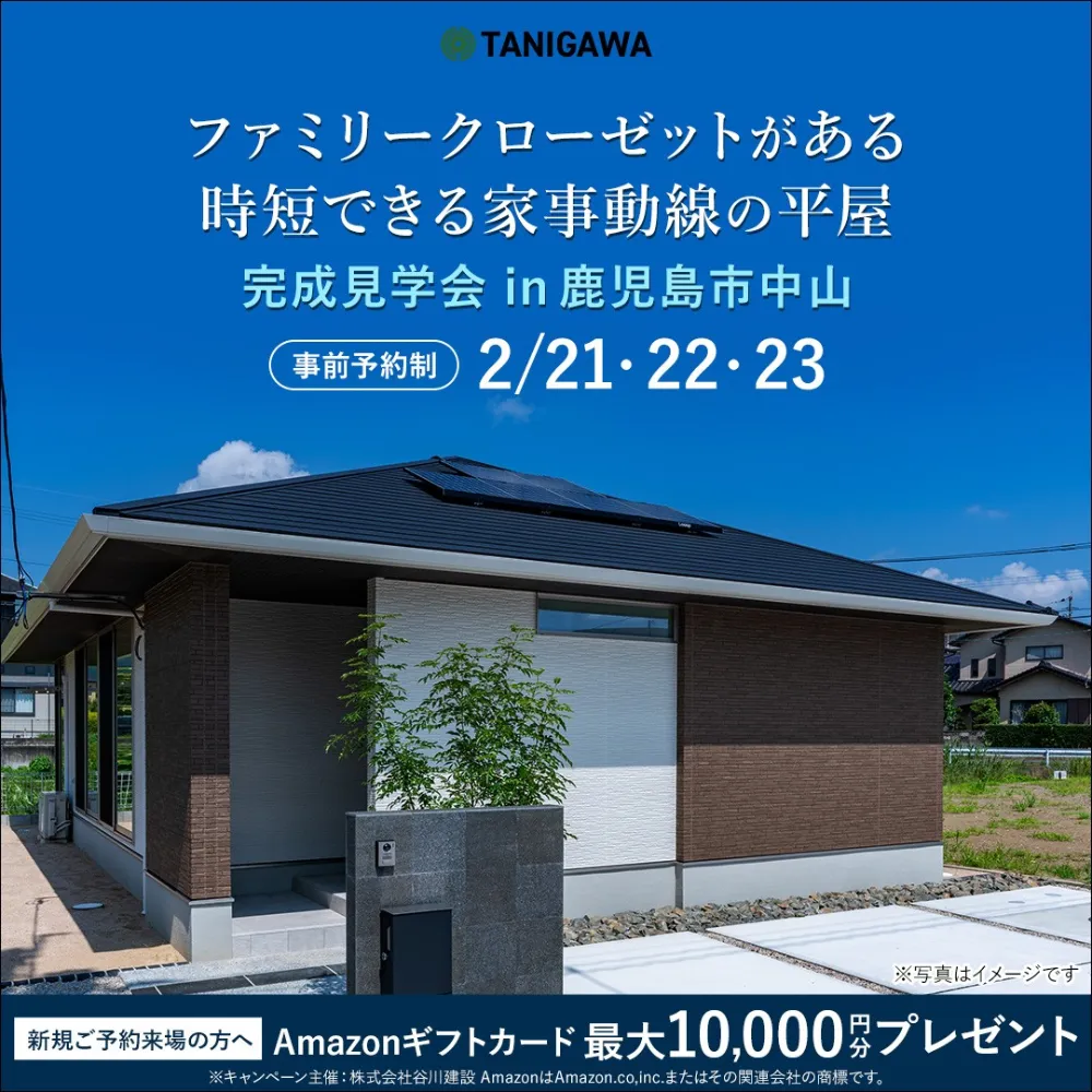 【鹿児島】ファミリークローゼットがある時短できる家事動線の平屋 完成見学会in鹿児島市中山