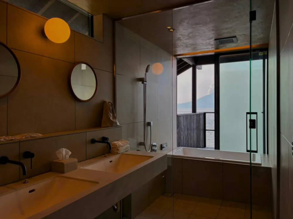 お風呂は桜島を眺めながら非日常を味わえる特別な空間。